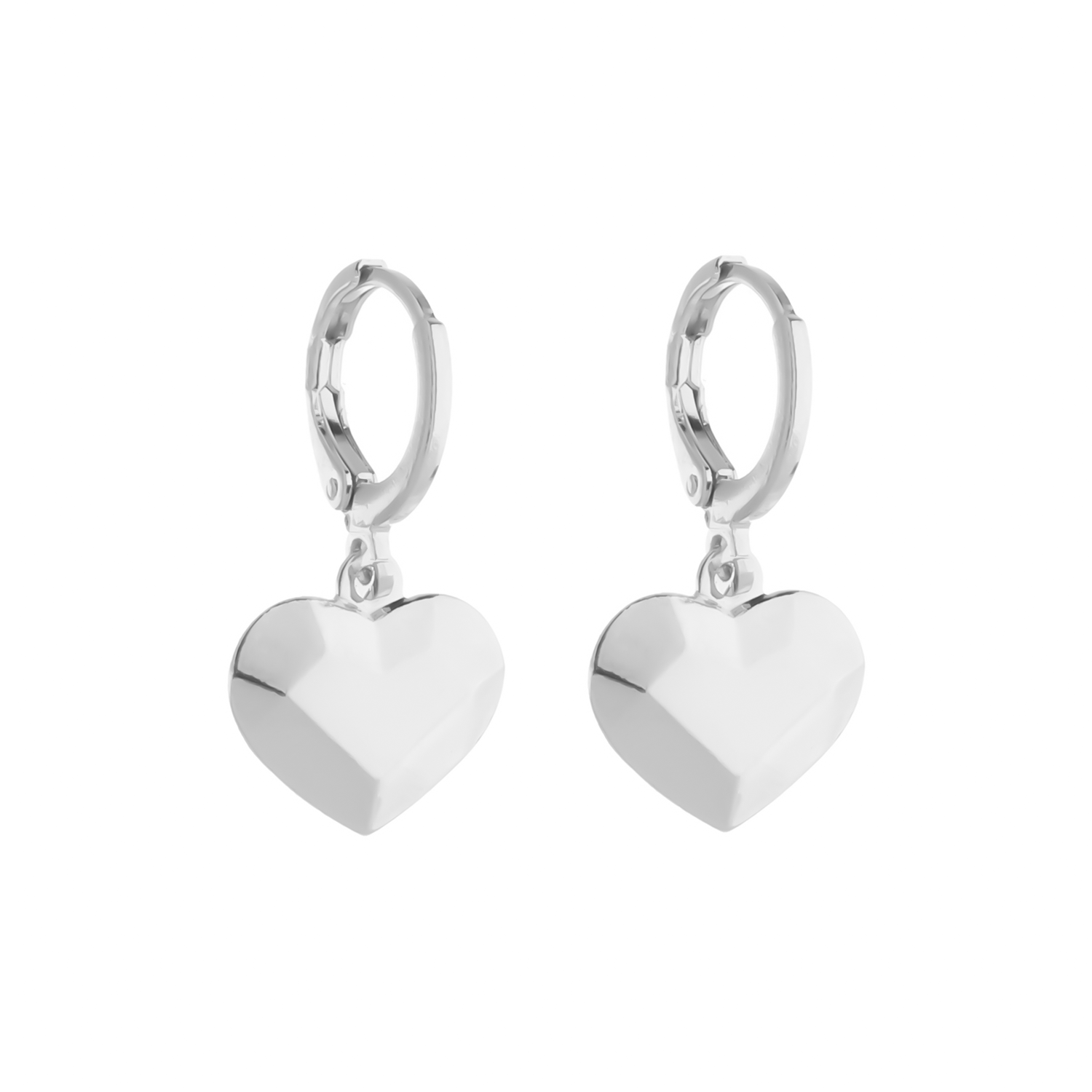 Brinco Lilith Allure Prateado de Argolinha Coração Traços Retos / Lilith Allure Silver Huggie Earrings with Geometric Heart Charm